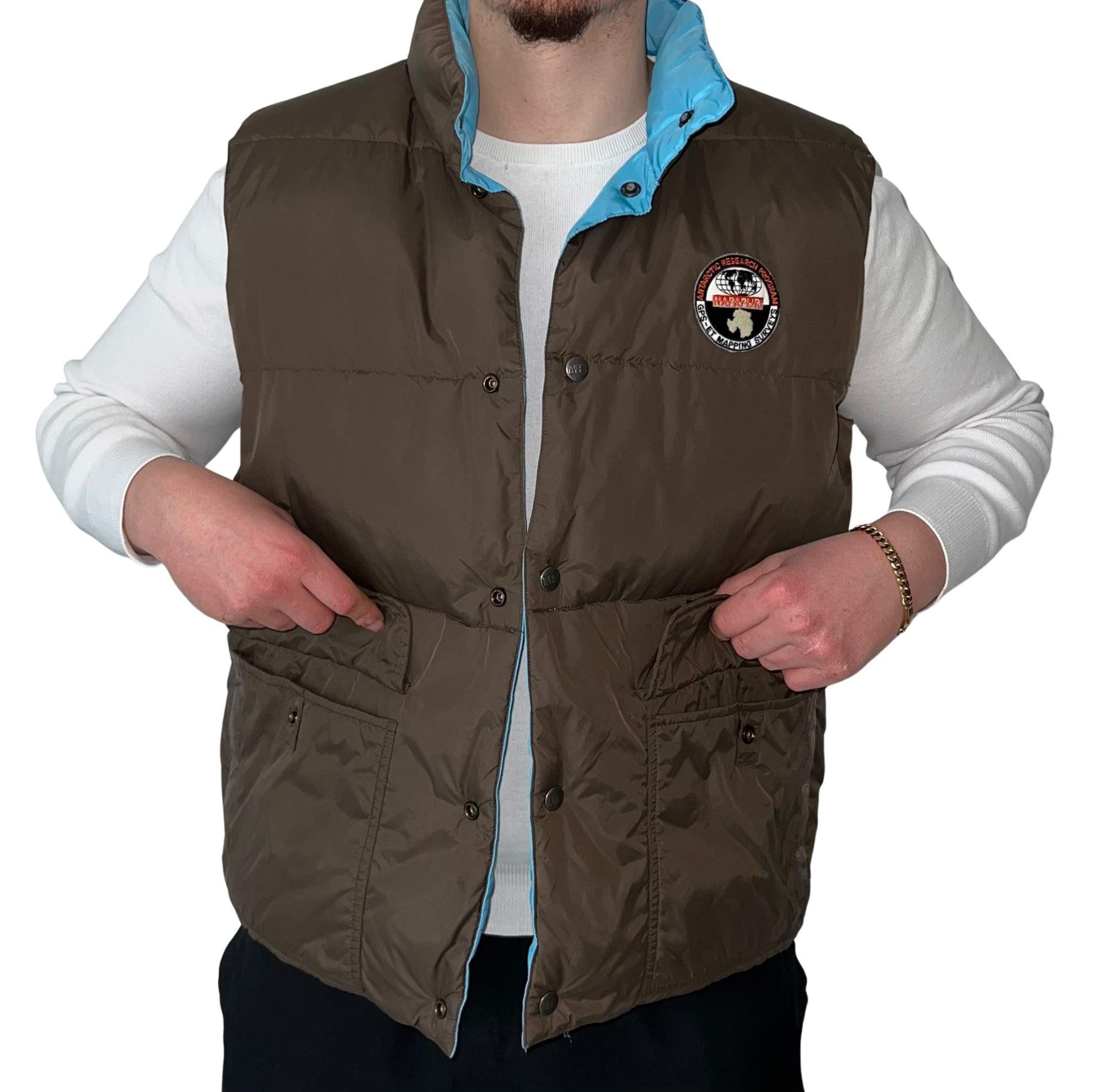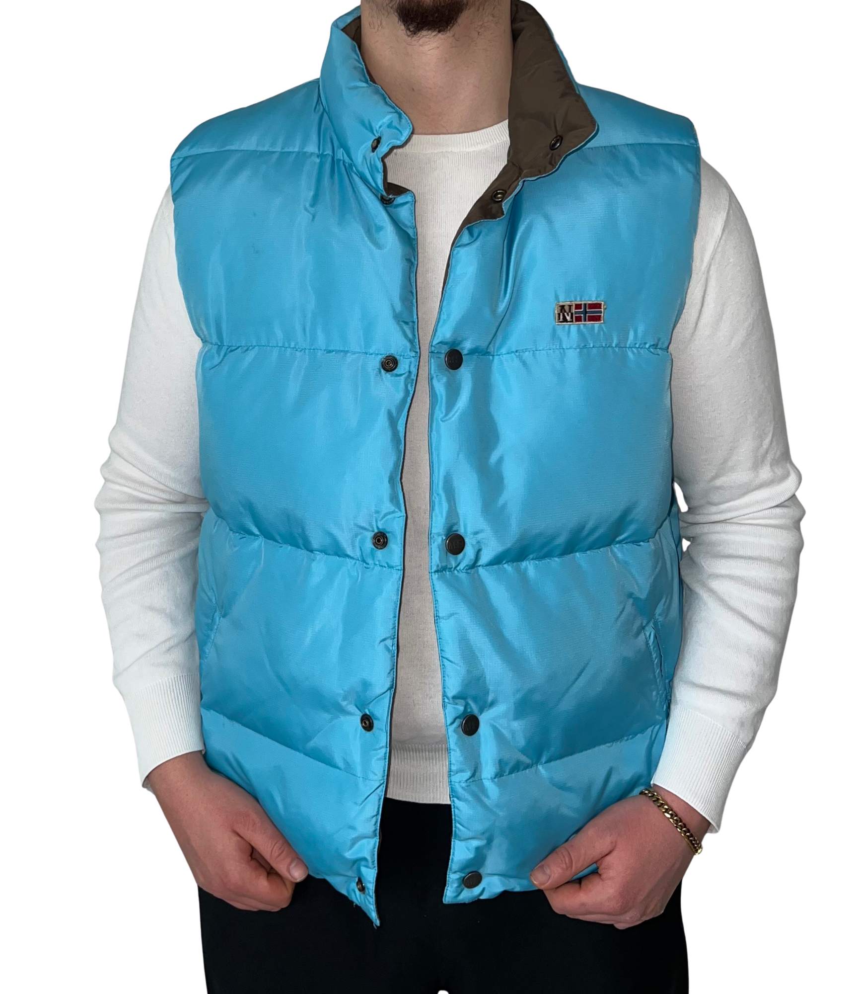 Entdecke die stilvolle und funktionale 2-seitige Weste von Napapijri! Diese vielseitige Weste bietet zwei verschiedene Looks und ist ideal für jede Gelegenheit. Auf der einen Seite präsentiert sie sich in einem lebhaften Himmelblau mit dem markanten Napapijri-Logo, während die andere Seite in einem schlichten Braun gehalten ist, perfekt für einen minimalistischen Look.